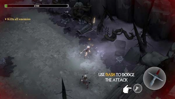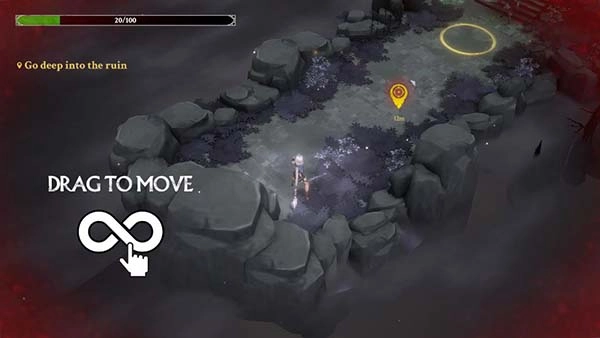 1. 开启灵魂猎手地牢折相思版游戏,进入后,用左手操控角色移动。
