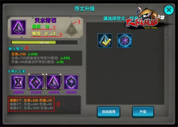 就升级符文的先后顺序而言,我个人设定的优先级为:核心符文>火符文>风符文>水符文>土符文。为何如此排序呢?这是因为我个人觉得攻击比血量更为关键。大家只要仔细留意就会发现,在符文所有属性都能激活的情况下,核心符文所增加的内容似乎最多。火符文能增加三次攻击,风符文是增加两次攻击和一次生命,水符文是增加一次攻击和两次生命,土符文则是增加三次生命。当然啦,每个人玩游戏的思路不尽相同,要是有人觉得生命更重要,那么把这个顺序颠倒过来也无妨。