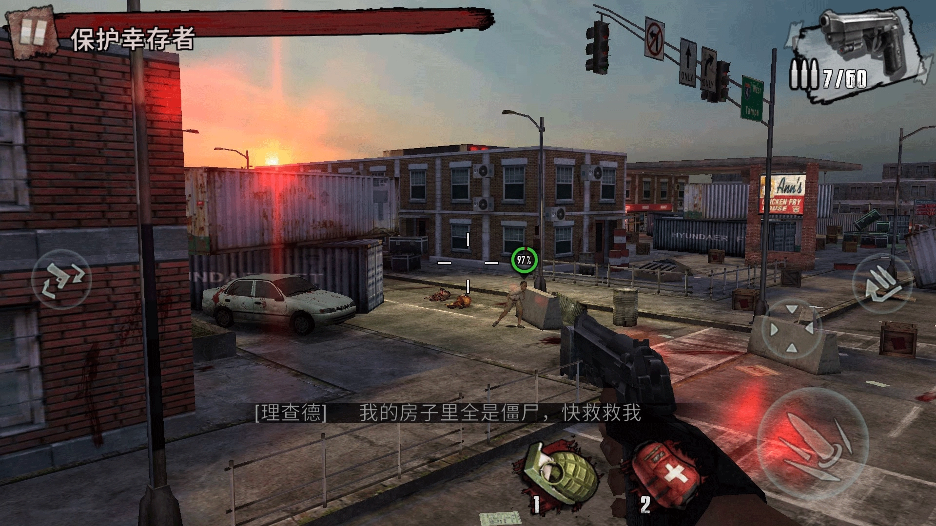3、进入关卡以后,左上方出现关卡目标,比如这一关是保护幸存者