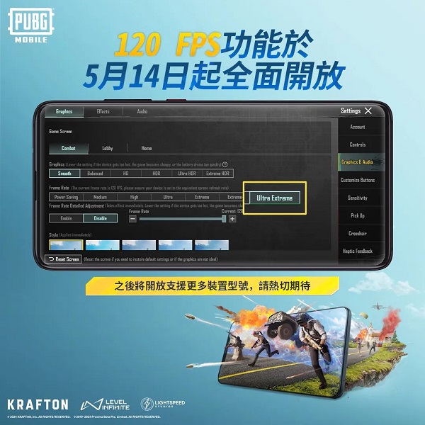 部分装置机型首次开放支持120 fps,更多机型适用90 fps,带来更流畅的对局体验。