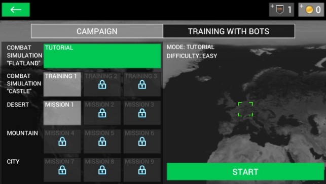 2、在单人模式中,选择要挑战的关卡后点击右下角的START即可开始,这里我们以TRAINING 1为例;