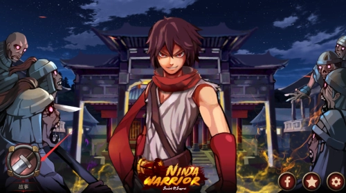 1、点击故事按钮,开始忍者武士游戏剧情挑战。