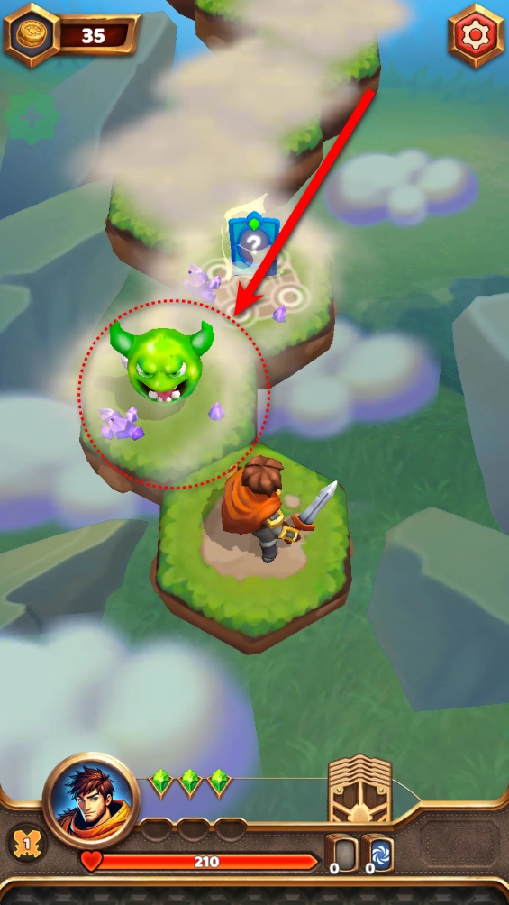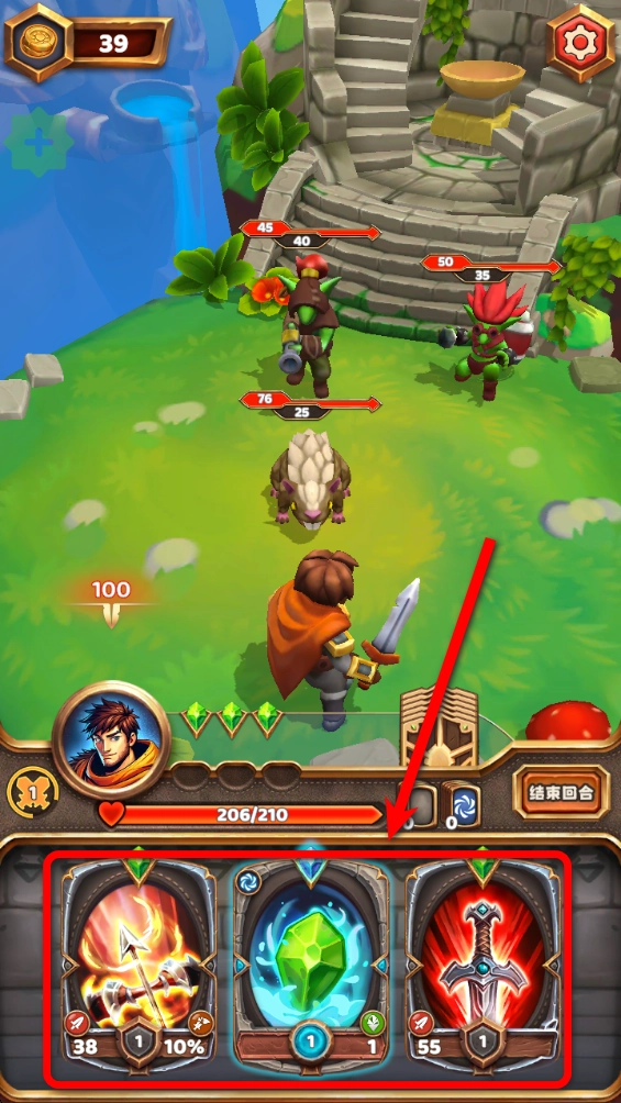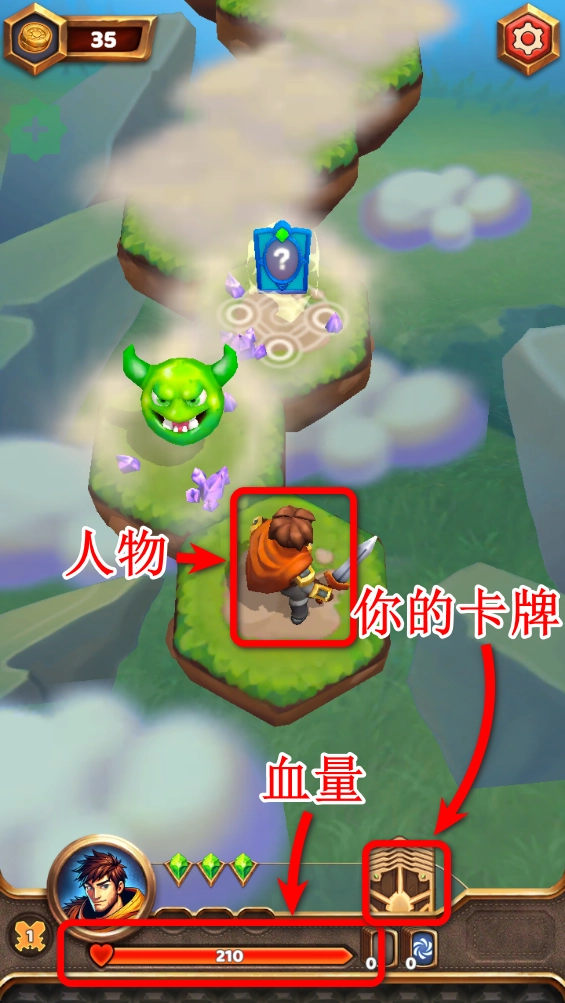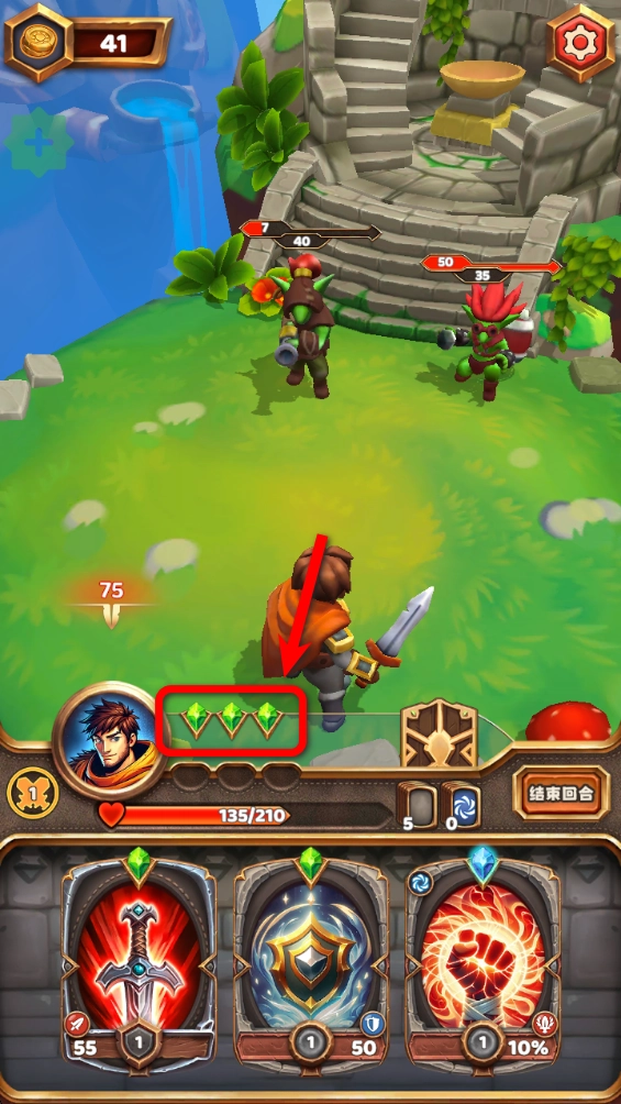 4、这块绿色的石头代表你的回合数,每一块石头意味着一次攻击机会。卡牌上若带有绿石头标志,便表示使用该卡牌需要消耗绿色石头。