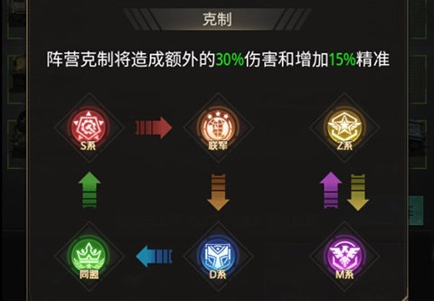 3、坦克阵营之间还存在克制关系,s系、联军、D系、同盟四种阵营相互克制,Z系和M系两种阵营互相克制。