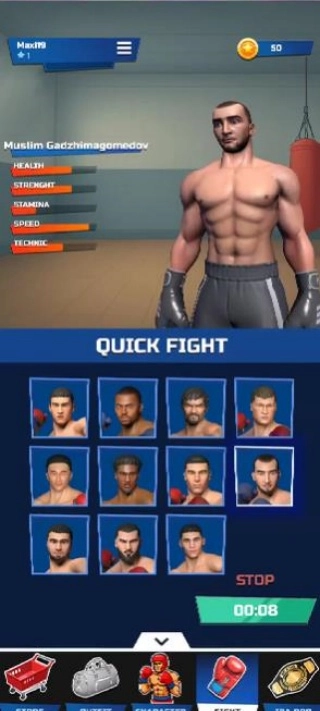 2、丰富的角色成长与技能升级系统,提升你的拳击手实力,打败更强大的对手。