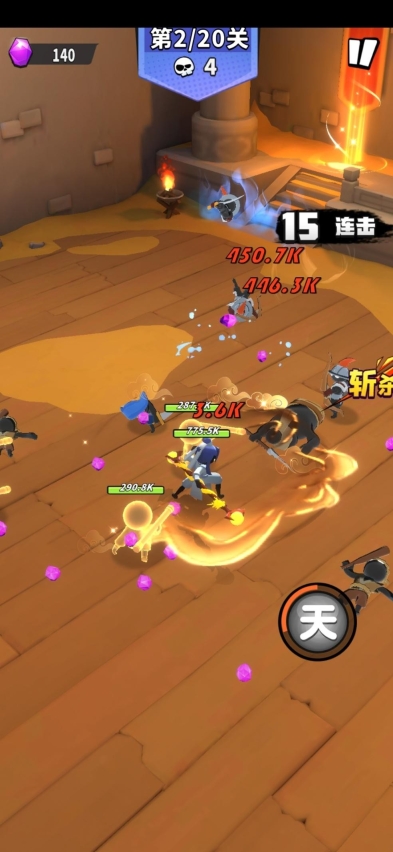 单手可操作,角色自动移动,玩家控制攻击和闪避,专注爽快的打斗体验和躲避秀操作!