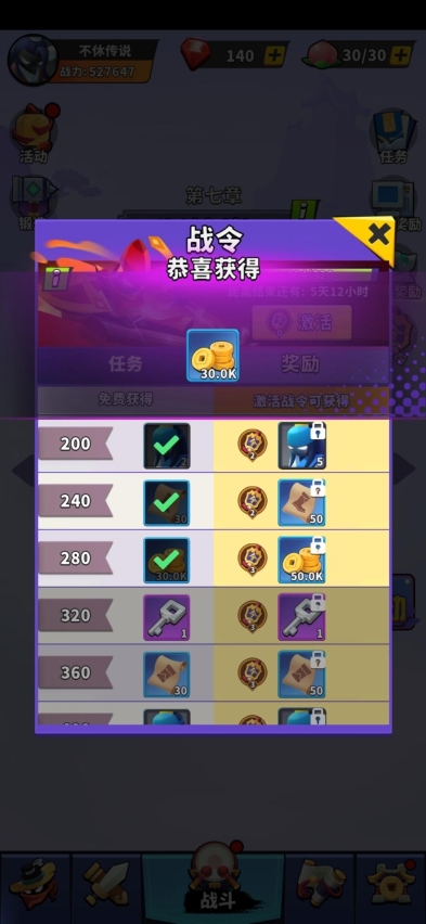 战令也可带来适当的金币收益,完成战令指定点数可获得金币。例如,获得280战令点可获得30K金币,但相对获得金币的相对次数少,可作为少侠获得金币的辅助方式,毕竟,蚊子腿再小也是肉。
